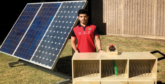 Hamad Khaled Issa Bouataba Al Zaabi, a student at the Office of Scholarships Scholarship in the United States of America at the University of Arizona State Department of Engineering Management, in collaboration with a fellow of the Faculty of Engineering graduated project on the investment of clean and renewable renewable solar energy. The project's main idea was to manage a project for a US company, SolarSpeel, which designed a solar-powered solar charger to be manufactured in the Republic of Rwanda and provided to schools that lacked electricity.