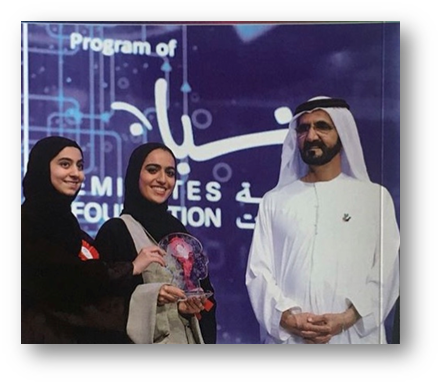 وقد تمّ اختيارها كسفيرة في برنامج "سفراء شباب الإمارات لدولة الصين" تحت رعاية ديوان وليّ عهد إمارة أبوظبي، ومتحدّثة في "مؤتمر المهارات العالمية" بحضور 30 وزير ووزيرة من جميع أنحاء العالم عن مساهماتها في مجال الابتكار، وترشيحها واختيارها كممثلة من 3 ممثلين لمجلس محمد بن زايد لأجيال المستقبل.