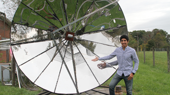 He is currently working on the project "Solar Thermal", a satellite dish equipped with cameras and cameras programmed to track the sun all day, so that it can collect energy from them to generate electricity, heating water and air and drying crops.